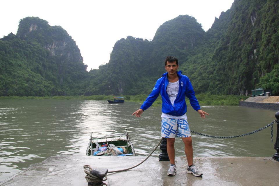 Η τρίτη φωτογραφία, πάρθηκε στο Βιετνάμ στις 4 Αυγούστου, μετά από την κρουαζιέρα στον κόλπο Ha Long, πολύ κοντά στα σύνορα με την Κίνα. Όπως χαρακτηριστικά μας επεσήμανε ο Αντρεάς “περιμένοντας το καραβάκι, κάτω από τροπική βροχή, το αδιάβροχο φάνηκε πολύ χρήσιμο!”