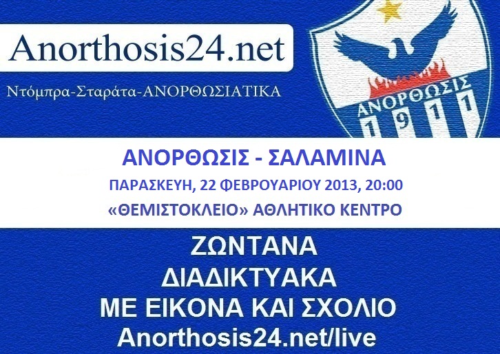 Το παιχνίδι θα μεταδοθεί ζωντανά από την ιστοσελίδα μας, στο anorthosis24.net/LIVE