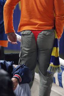 Με αυτούς έχουμε να κάνουμε παιδιά. Με τους τάχα Ελληναράδες, με τα παιδιά της μαμάς, με τα παιδιά που δεν έχουν κανένα ενδοιασμό να φορέσουν ακόμη και… string σε παιγνίδι ποδοσφαίρου! Ο αγαπητός Αποελίστας της φωτογραφίας, βρήκε την ευκαιρία να δείξει το πόσο… άνδρας είναι, φορώντας ένα κατακόκκινο string! Η φωτογραφία αυτή είναι παλιά, από τότε που ο Βακουφτής πήρε μεταγραφή στην Ομόνοια και θέλησαν με αυτό τον τρόπο να… πικκάρουν τον Ελλαδίτη επιθετικό, αλλά κάποια παιδιά της κερκίδας βρήκαν την πραγματική χρήση του string! Με αυτούς έχουμε να κάμουμε λοιπόν, και να είναι σίγουροι ότι θα κάνουμε ειδική παραγγελία string για αυτούς, γιατί θα τα χρειαστούν! Καλοφόρετο παιδιά!