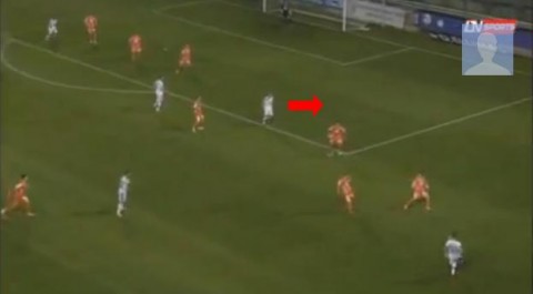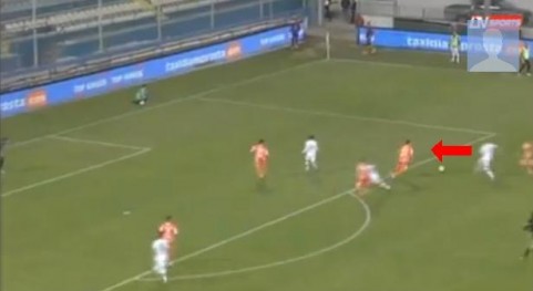 Μόλις ο Σπατάτσιο γίνει κάτοχος της μπάλας, κινείται με γρήγορα πρώτα βήματα στο κενό χώρο αφήνοντας πίσω το αντίπαλο αμυντικό, ωστόσο αδικεί τον εαυτό του με ένα κακό -για την κλάση του- κοντρόλ.
