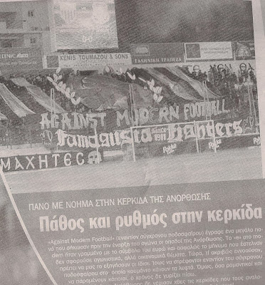 Στα αξιοσημείωτα της χρονιάς, ήταν ο χαρακτηρισμός “ρομαντικοί” που λάβαμε σε ένα δημοσιεύμα εφημερίδας, μετά από μια είσοδο που ετοιμάσαμε με σλόγκαν “Ενάντια στο Μοντέρνο Ποδόσφαιρο”.