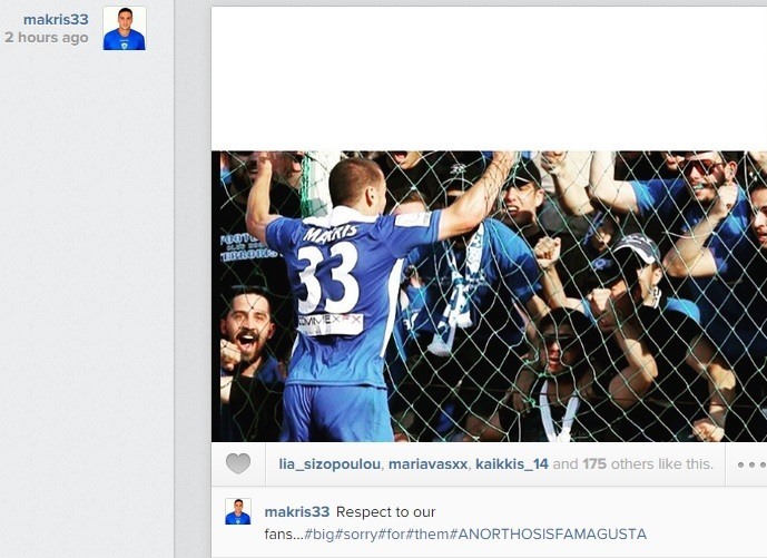 Σκληρή αυτοκριτική από τον Ανδρέα Μακρή, ο οποίος αισθάνθηκε την ανάγκη να στείλει τις απολογίες τους προς τον κόσμο της Ανόρθωσης, μέσω του Instagram.