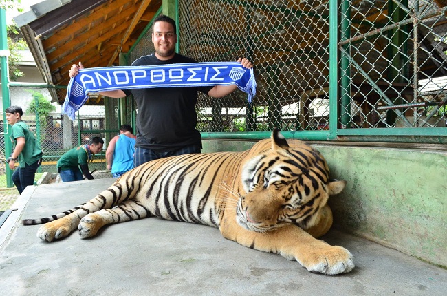 Εντυπωσιακές οι φωτογραφίες που μας απέστειλε ο φίλος του Anorthosis24 Παναγιώτης Λαδοπούλης. Μέσα στο κλουβί μαζί με αυτή την τεράστια τίγρη, ο φίλος Παναγιώτης μαζί με το κασκόλ της αγαπημένης μας ομάδας, μας τονίζει ότι «και οι τίγρεις υποτάσσονται στο μεγαλείο του Φοίνικα!». Οι φωτογραφίες από το Πουκέτ της Ταϊλάνδης, στο «Tiger Kingdom».