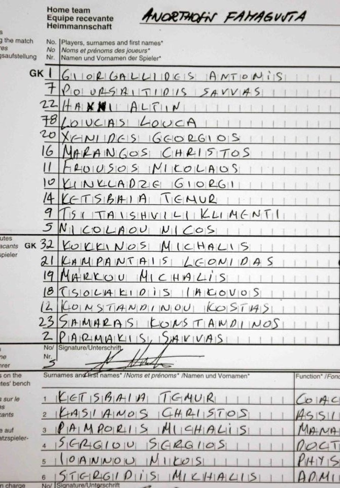 Ένα ντοκουμέντο για το αρχείο κάθε Ανορθωσιάτη παρουσιάζουμε πιο κάτω που αφορά τον αγώνα της 9ης Αυγούστου 2005 απέναντι στους Ρέιντζερς της Γλασκώβης. Συγκεκριμένα παρεθέτουμε το φύλλο αγώνος υπογεγραμμένο από τον τότε αρχηγό Νίκο Νικολάου: