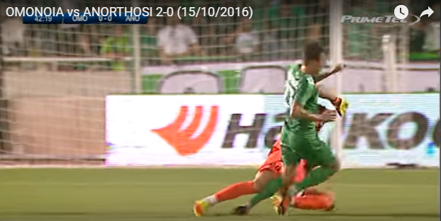 Ο τηλεοπτικός φακός είναι αδιάψευστος μάρτυρας ότι ο επιθετικός της Ομόνοιας άρχισε να σέρνεται πολύ πριν πλησιάσει καν τον τερματοφύλακα της Ανόρθωσης.