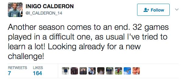 Τιτίβισμα αποχώρησης (;) από Καλδερόν ΣΦΗΝΑΚΙΑ Δημοσιεύτηκε στις: 20/05/2017 - 13:38 Σε αναζήτηση νέας πρόκλησης δηλώνει ότι είναι ο Ινίγκο Καλδερόν, μέσω ανάρτησής του στο Twitter. Ο Ισπανός κεντρικός αμυντικός φαίνεται να ανοίγει ουσιαστικά την πόρτα της εξόδου, όπως προκύπτει από το πιο κάτω:1911 Supporters Previous articleΗ Ευρώπη μας καλεί στα μέσα ΑυγούστουNext article200% για Λαΐφη ΡΟΗ ΕΙΔΗΣΕΩΝ Αγωνία για Αρτυματά 09/11/2025 Δύσκολη έδρα… 09/11/2025 Έτσι διαμορφώθηκε η βαθμολογία 09/11/2025 «Ο προπονητής μας θέλει να πηγαίνουμε…» 09/11/2025 «Ήταν εμφάνιση που θύμισε πως πρέπει να είναι η Ανόρθωση…» 09/11/2025 ΒΙΝΤΕΟ: Τα στιγμιότυπα κόντρα στην Πάφο 09/11/2025 ΡΟΗ ΕΙΔΗΣΕΩΝ