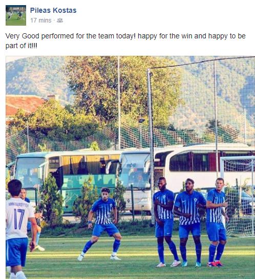 Πολύτιμα αγωνιστικά λεπτά μέτρησε σήμερα ο Κώστας Πηλέας στο νικηφόρο φιλικό απέναντι σε αντίπαλο από το Τουρκμενιστάν. Ο νεαρός ακραίος αμυντικός αντικατέστησε μαζί με τον Μακαρόφ τους Πράνιτς και Μπανταλόφσκι, αναρτώντας στον προσωπικό του λογαριασμό στο facebook το πιο κάτω μήνυμα: