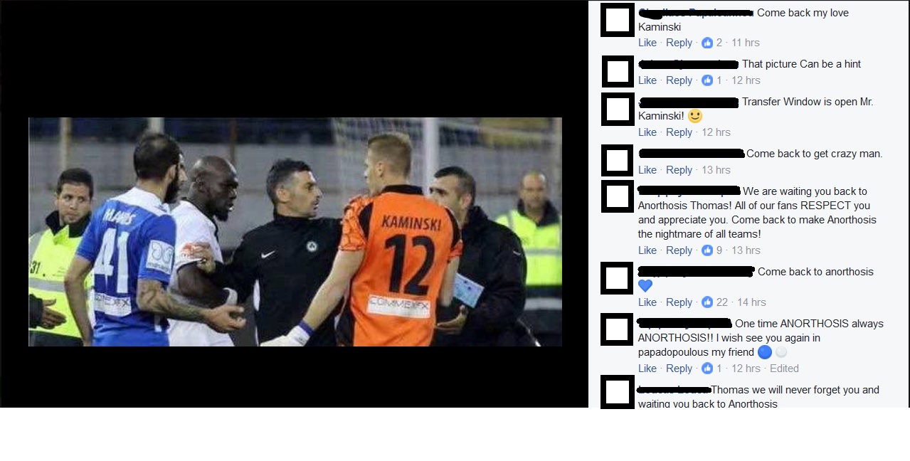 Ο Τόμας Καμίνσκι ανέβασε χθες μια φωτογραφία αγωνιζόμενος με τον Φοίνικα στο στήθος και έδωσε κάθε δικαίωμα στο φίλαθλο κοινό της Ανόρθωσης να τον προτρέπει μέσω σχολίων να επιστρέψει πίσω στην ομάδα.