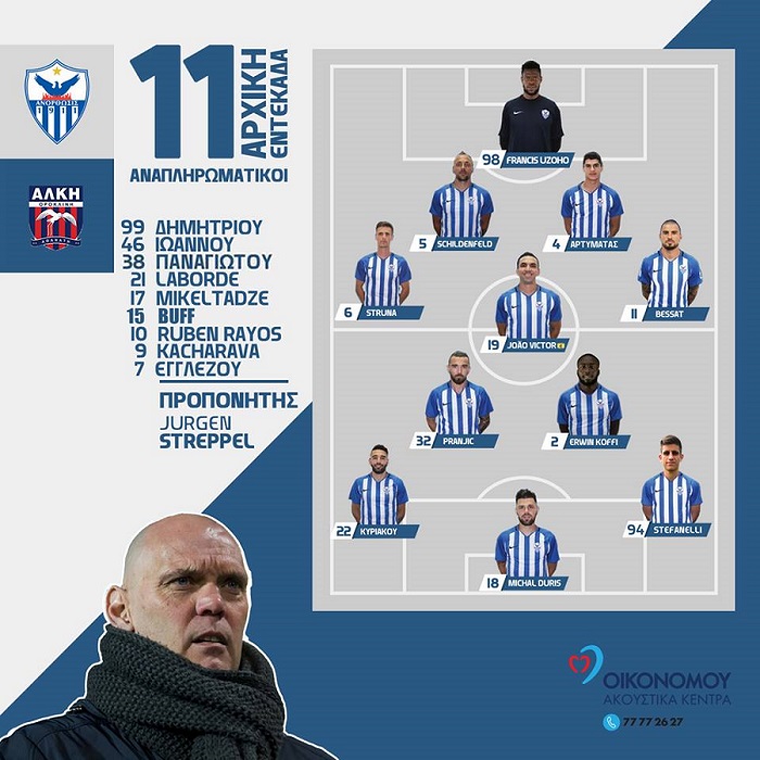 Η επιστροφή του Φράνσις Ουζόχο στη θέση του τερματοφύλακα είναι το σημείο αναφοράς στην αρχική εντεκάδα την οποίαν επέλεξε ο Γιούργκεν Στρέπελ κόντρα στην Αλκή Ορόκλινη. Ο Ολλανδός τεχνικός παρατάσσει την ομάδα με τετράδα στα μετόπισθεν και συγκεκριμένα τους: