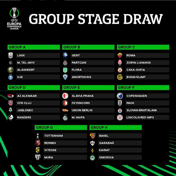 Οι αντίπαλοι μας στο Europa Conference League! ΠΟΔΟΣΦΑΙΡΟ Δημοσιεύτηκε στις: 27/08/2021 - 15:00 Πραγματοποιήθηκε η κλήρωση για τη φάση των ομίλων της νεοσύστατης διοργάνωσης της UEFA, Europa Conference League.1911 Supporters H ομάδα μας έχει κληρωθεί στον δεύτερο όμιλο μαζί με τις Γάνδη, Παρτιζάν και Φλόρα Ταλίν. ΕΤΙΚΕΤΕΣAnorthosis24 Previous articleΠουλλαΐδης και Μήτρου…Next articleAnorthosis Famagusta FC! ΡΟΗ ΕΙΔΗΣΕΩΝ Αγωνία για Αρτυματά 09/11/2025 Δύσκολη έδρα… 09/11/2025 Έτσι διαμορφώθηκε η βαθμολογία 09/11/2025 «Ο προπονητής μας θέλει να πηγαίνουμε…» 09/11/2025 «Ήταν εμφάνιση που θύμισε πως πρέπει να είναι η Ανόρθωση…» 09/11/2025 ΒΙΝΤΕΟ: Τα στιγμιότυπα κόντρα στην Πάφο 09/11/2025 ΡΟΗ ΕΙΔΗΣΕΩΝ