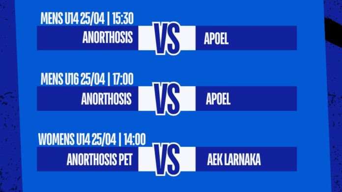 Στην κατηγορία U14 αγοριών, η ομάδα μας θα αντιμετωπίσει το ΑΠΟΕΛ στις 25 Απριλίου στις 15:30, ενώ αργότερα την ίδια ημέρα, στις 17:00, η U16 της ΑΝΟΡΘΩΣΗΣ θα κοντραριστεί επίσης με το ΑΠΟΕΛ. Νωρίτερα, στις 14:00, η ομάδα των κοριτσιών της U14 της Ανόρθωσης ΠΕΤ θα τεθεί αντιμέτωπη με την ΑΕΚ Λάρνακας.